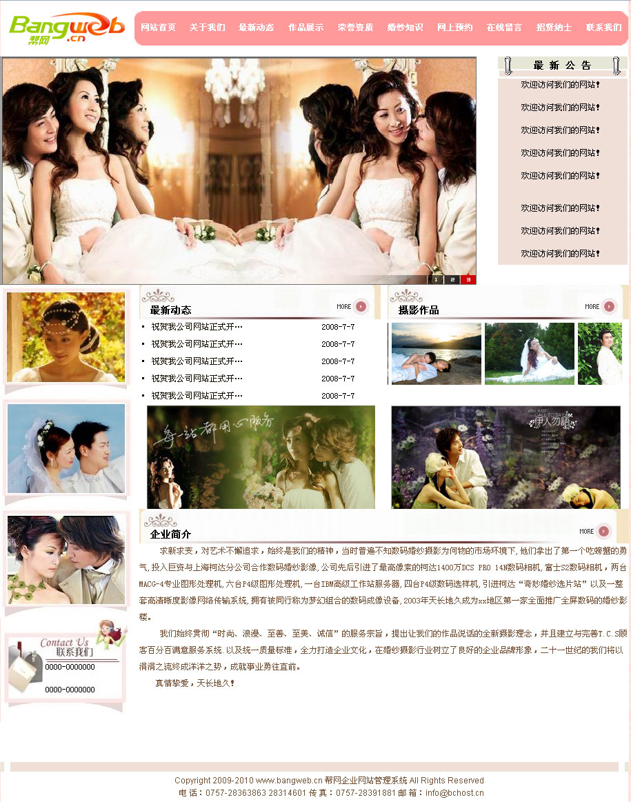 Copyright 2009-2012 www.bangweb.cn 帮网企业网站管理系统 All Rights Reserved 粤ICP备09104212号